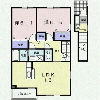 2LDK(洋6.5・洋6.1・LDK13.0) |